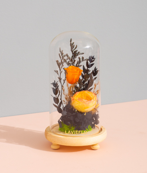 The lively play of many bright colours in these preserved flowers, encased in a bell jar, would speak volumes of the adorable love that you and your significant other have lovingly established.