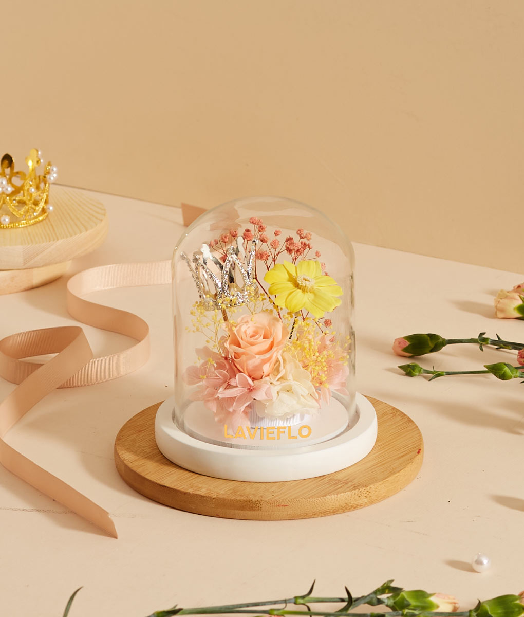 What’s a Queen without her crown and what’s a special occasion without flowers? Make her feel absolutely special with this unique gift of preserved flowers with a crown ornament! Engrave a name or some heartfelt wordings on a gold plate to make your gift truly special!