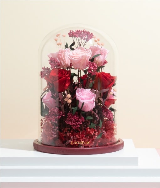 Whoever said less is better than more had clearly never seen glass preserved roses with baby’s breath runneth over. Feeling overflowing love for someone? This is the perfect gift for you.