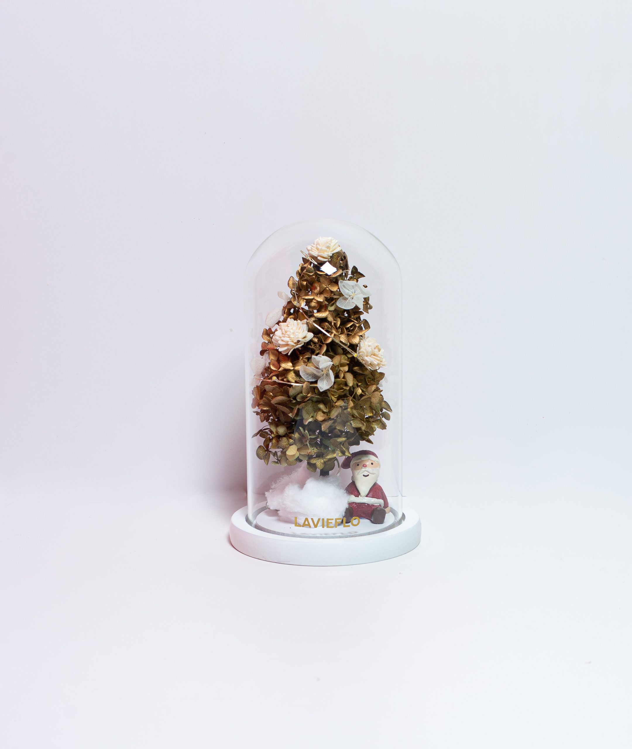 Fluffy golden hydrangeas to make up a mini Golden Christmas Tree. Engrave a name or some heartfelt wordings on a gold plate to make your gift truly special!
