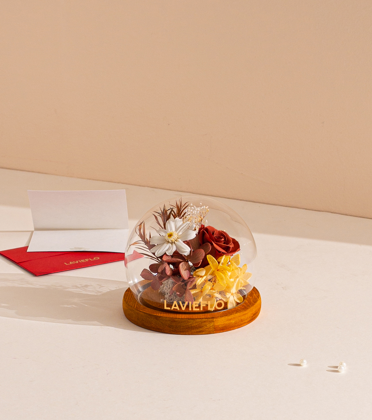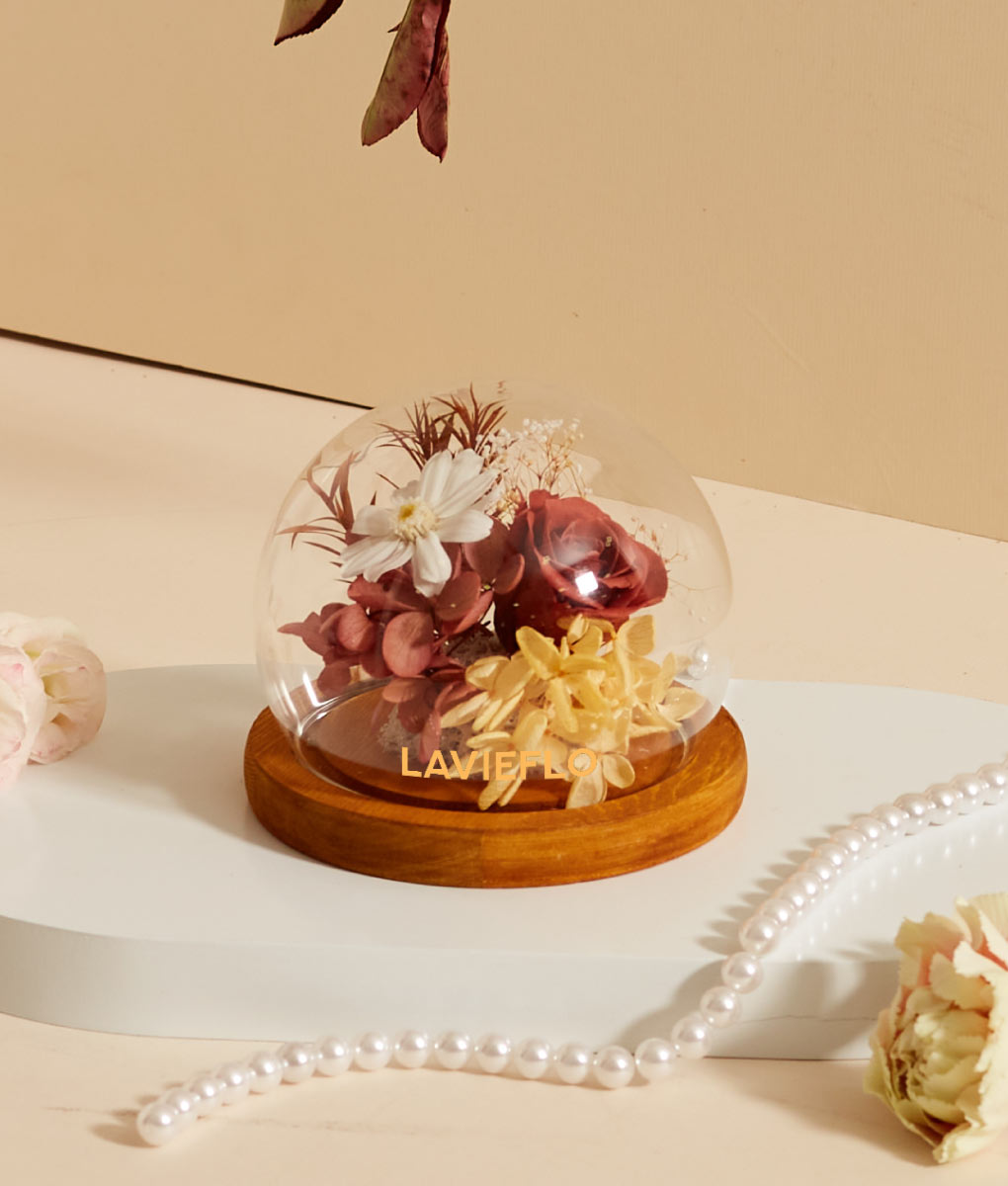 Pamper your super woman this Mother’s Day with a unique gift of preserved flowers! Engrave her name or some heartfelt wordings on a gold plate to make your gift truly special.