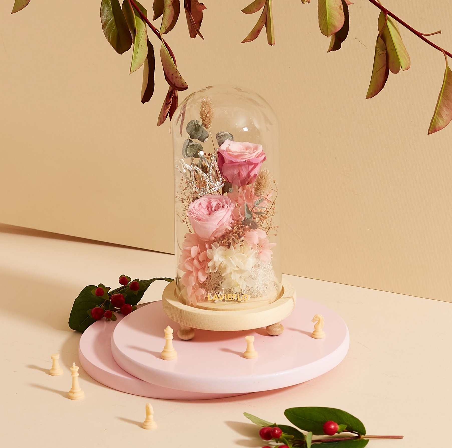 What’s a Queen without her crown and what’s a special occasion without flowers? Make her feel absolutely special with this unique gift of preserved flowers with a crown ornament! Engrave a name or some heartfelt wordings on a gold plate to make your gift truly special!