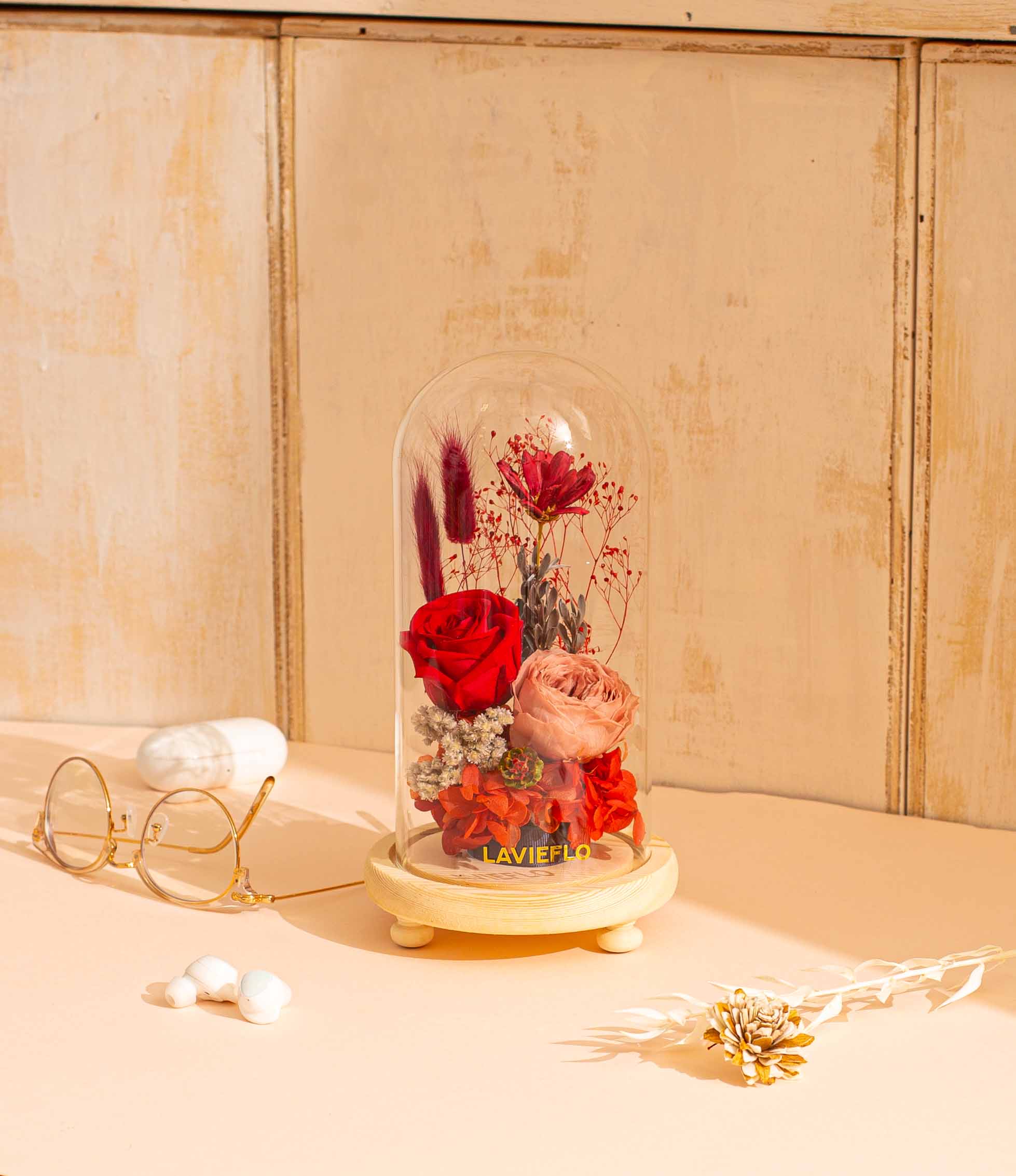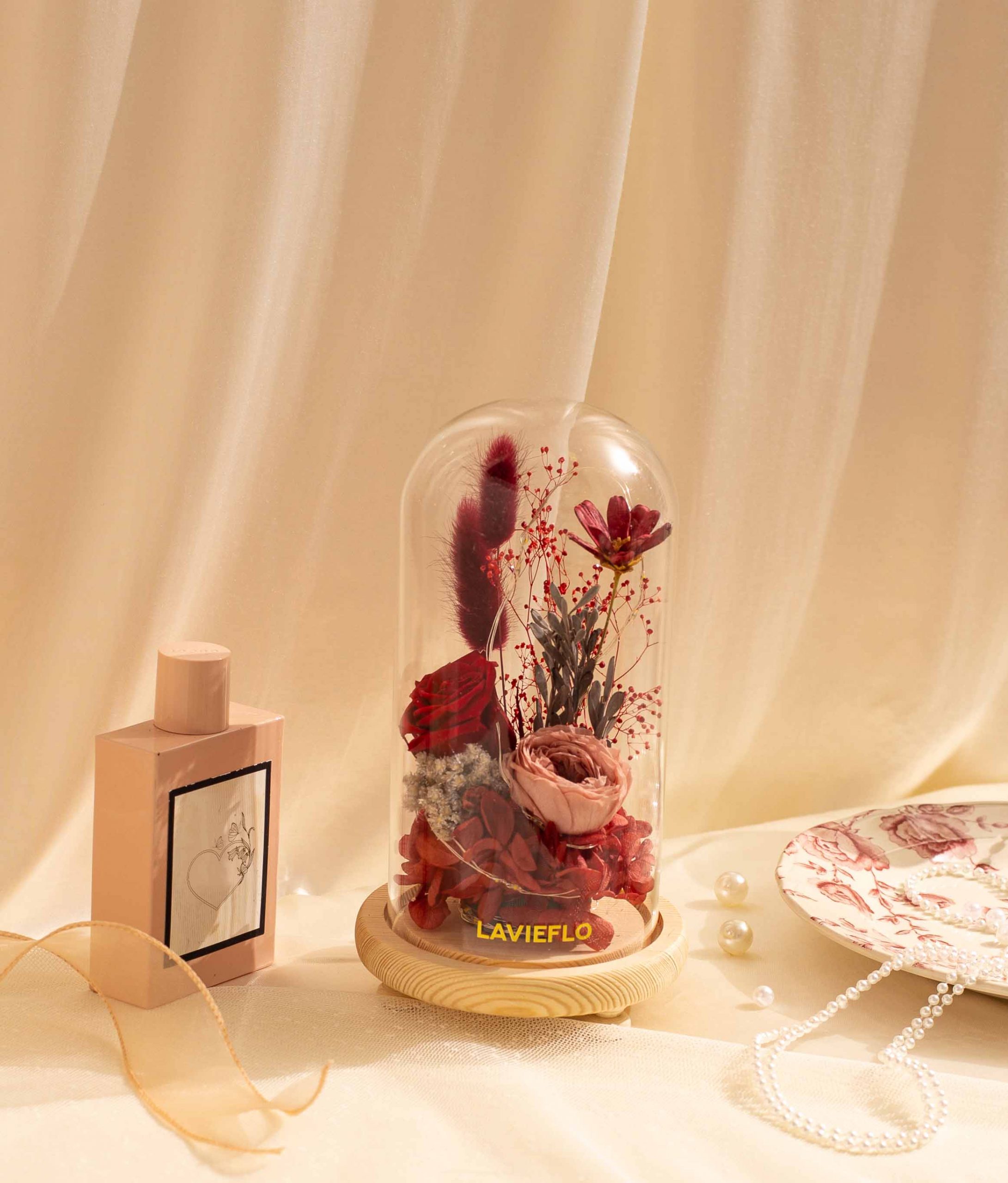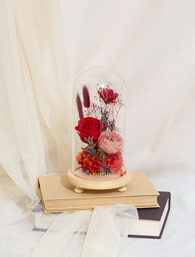 The perfect Valentine’s Day gift . A stunning arrangement of preserved flowers in red – the color of passion and romance.