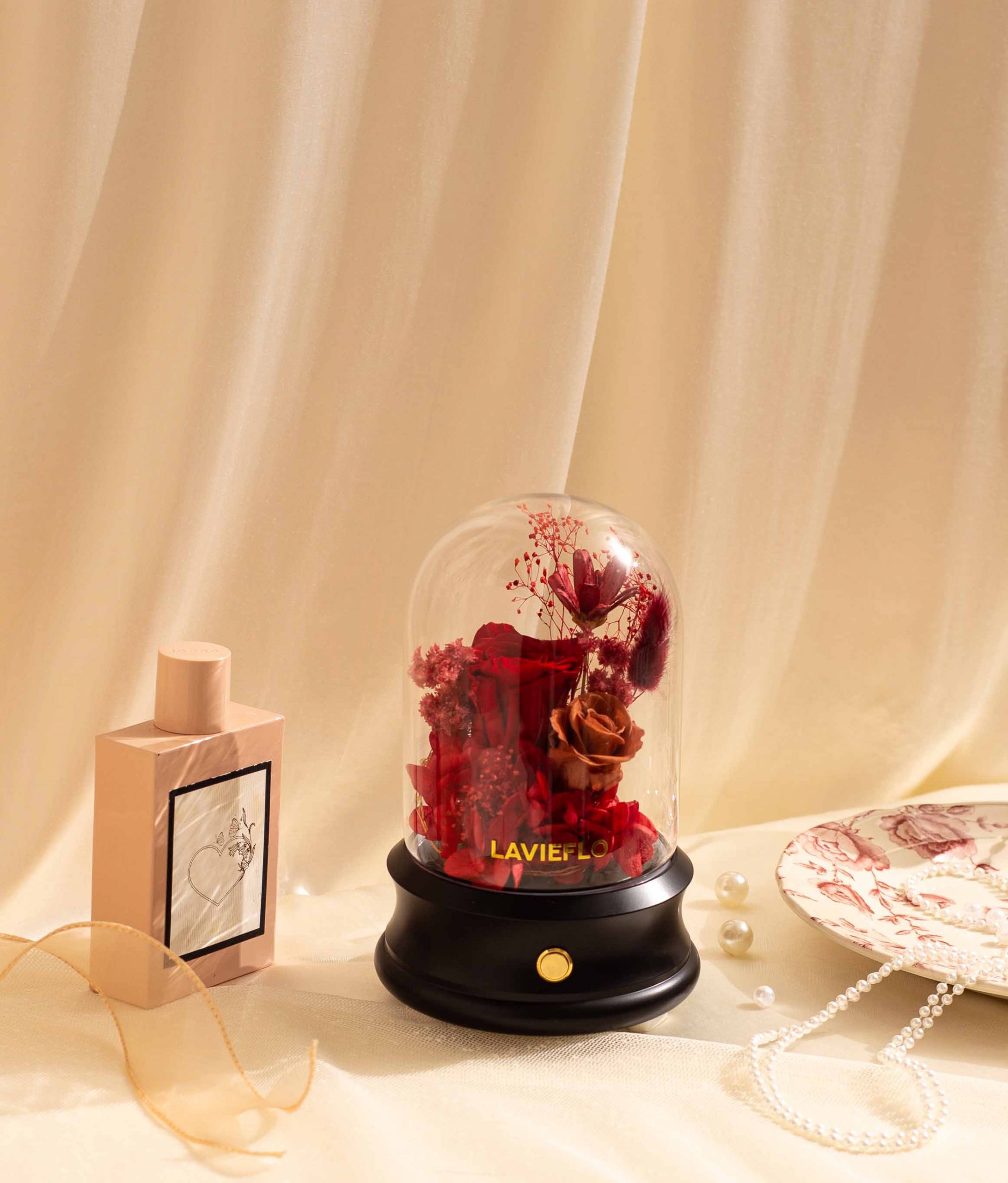 Let her know you are thinking of her this Valentine’s Day! Music expresses that which cannot be said, and so do flowers. Combine them and you have the best of both worlds to convey your love. This preserved floral arrangement will speak your heart’s words.