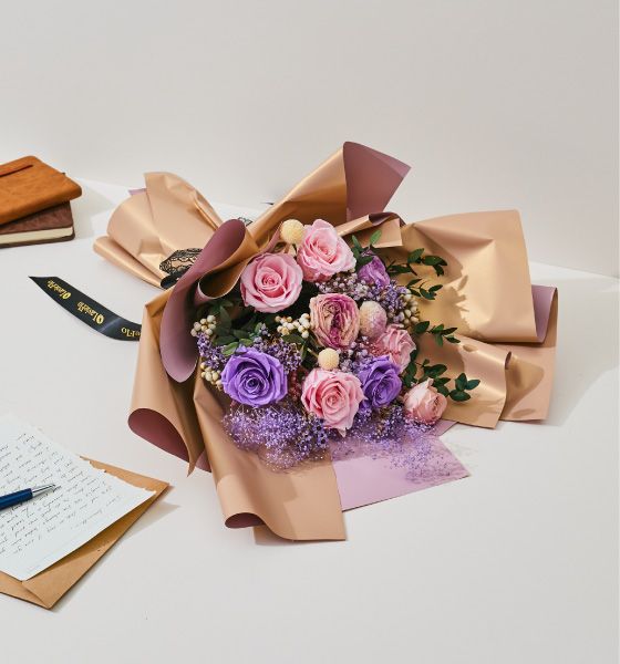 This exquisite bouquet is a classic, symbolising the perpetual and unending love you and your special one share. Show your love with this rustic and delicate preserved flower arrangement.