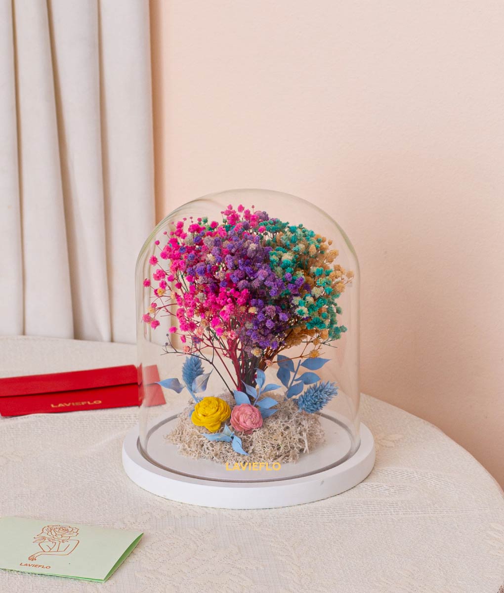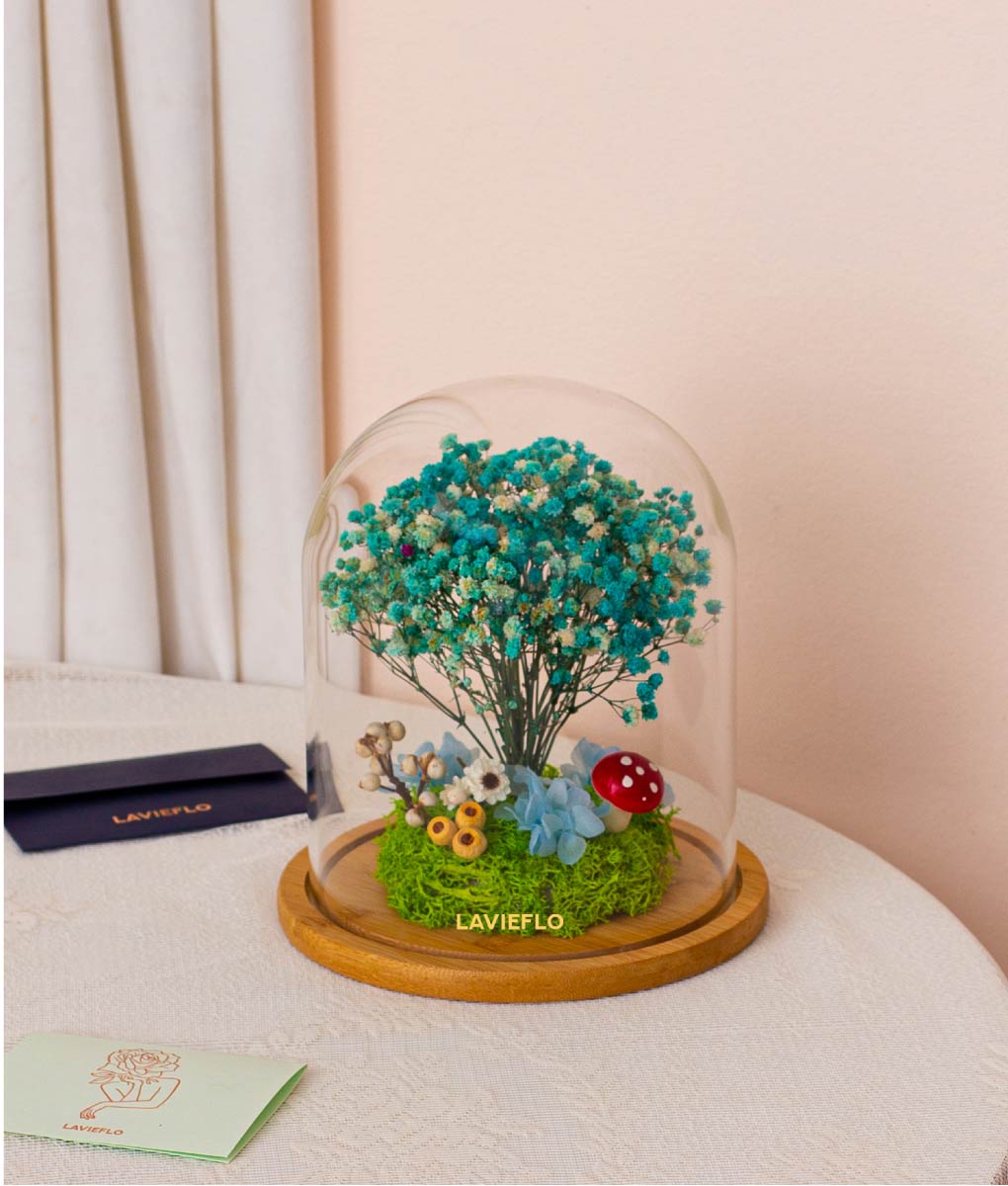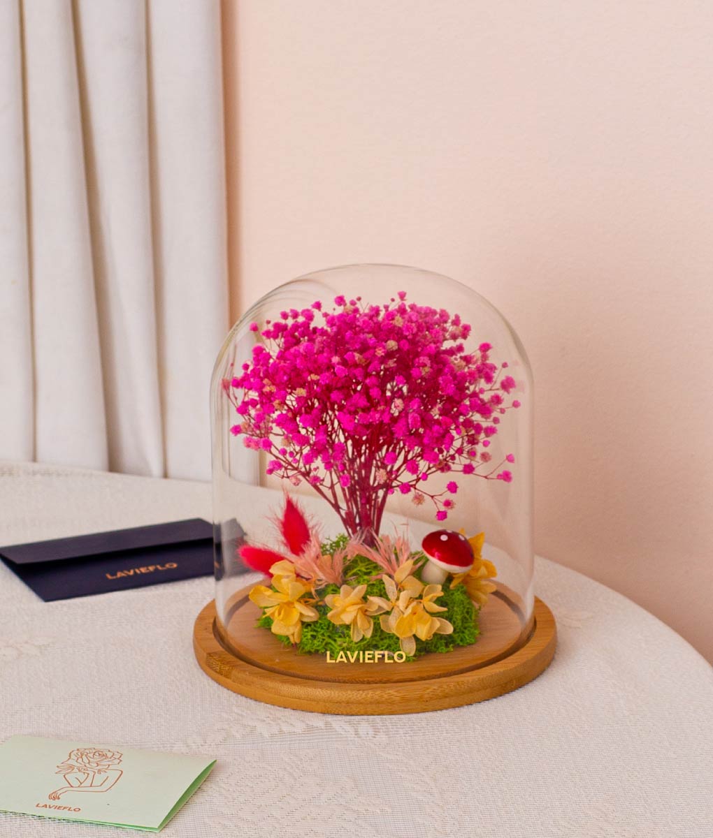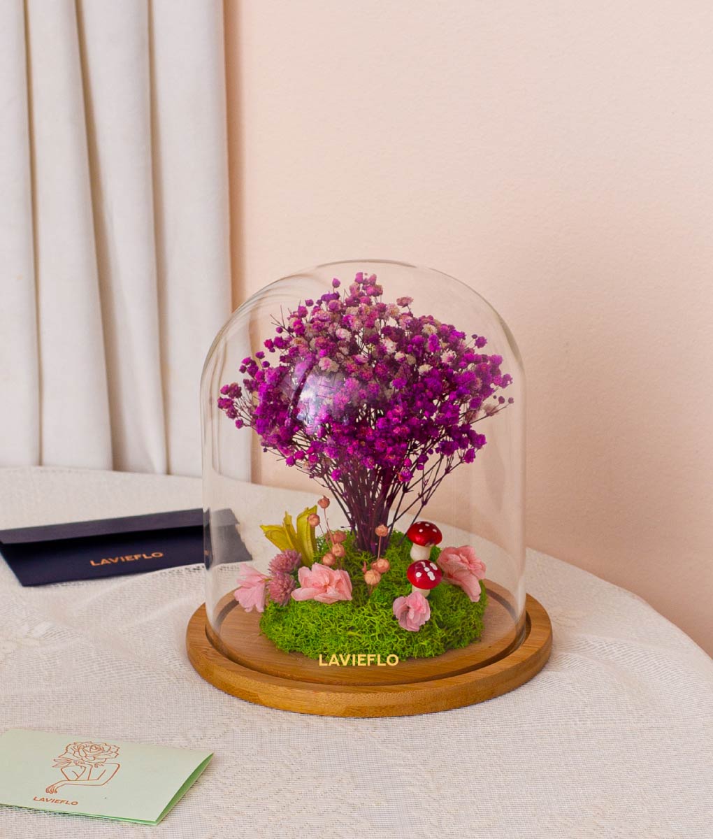 One of our most popular designs and rightfully so. Tree of Dreams features preserved baby’s breath and mini figurines – a perfect to make someone feel special.